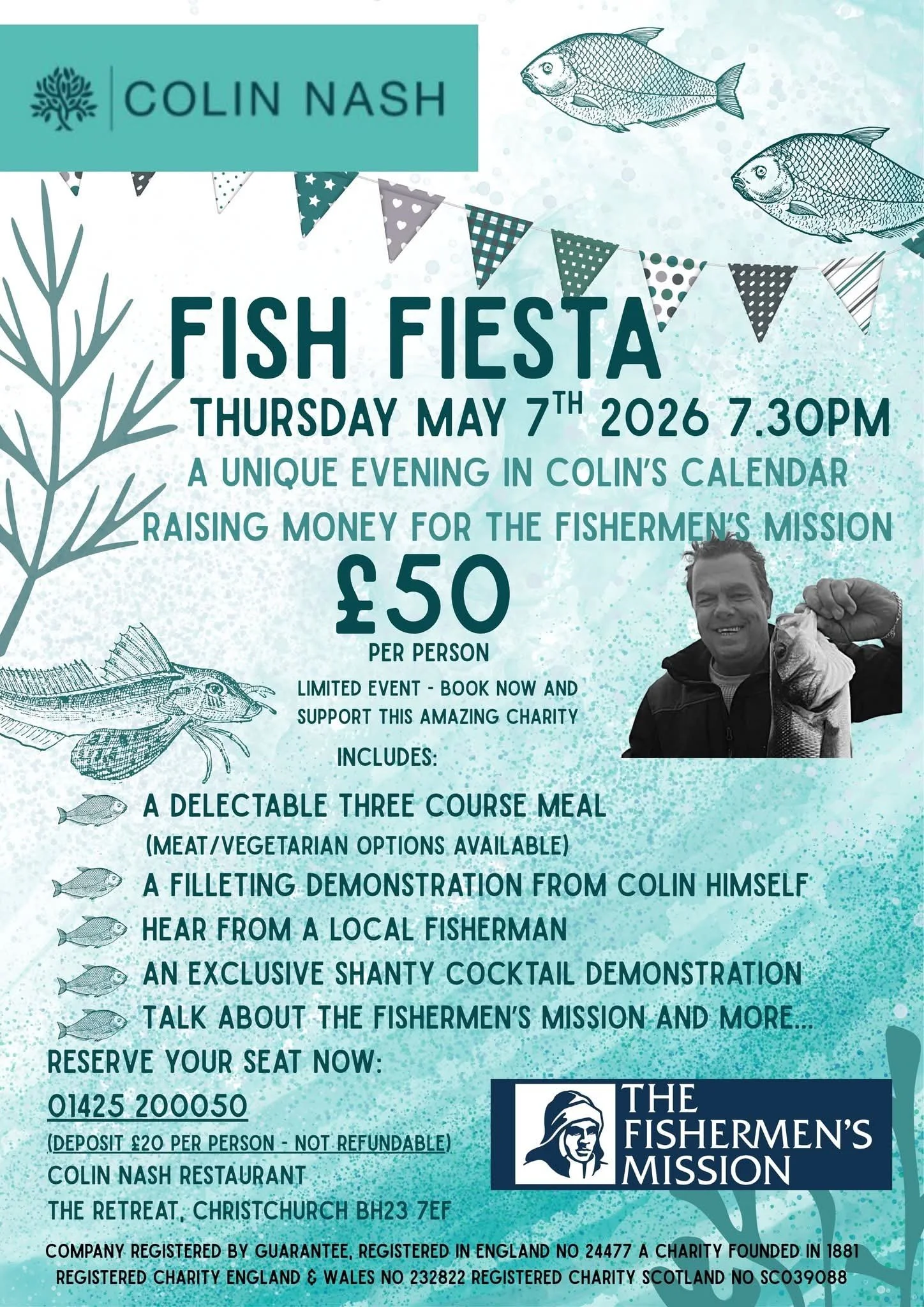 Help us raise money and awareness for an incredible charity ‘Fishermans Mission’, Includes a 3 course meal, Filleting Demonstration, a talk from local fisherman and a cocktail demonstration from ‘Shanty Vodka’.